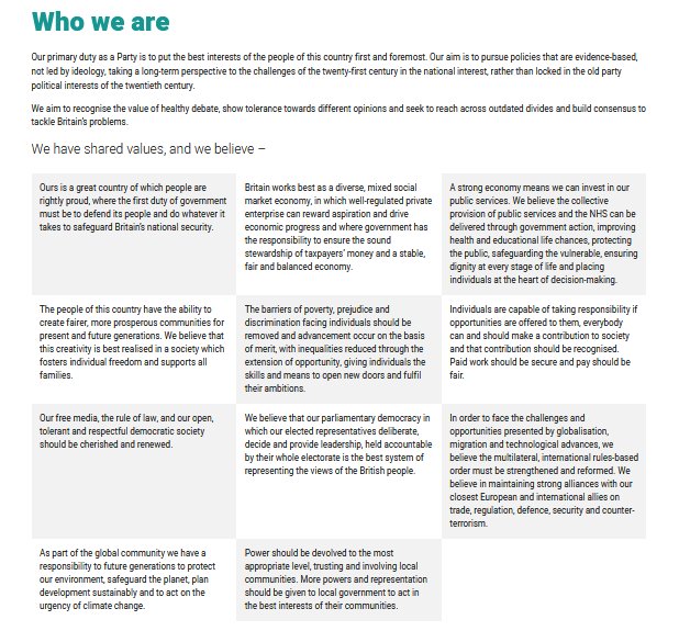 Undeterred, we went to the new party’s ‘Who We Are’ page. There, readers will find a list of paragraphs purporting to represent what ‘Change UK – The Independent Group’ believes in.