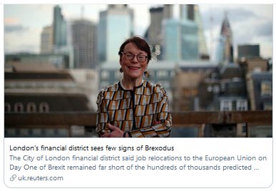 [12] Then of course there was the famous 'Brexodus' of talent and jobs from the City.