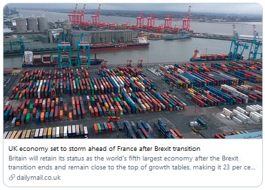 They now say the UK will strengthen its position as the 5th biggest economy globally, roaring ahead of France - the EU's great hope - as our tech sector ‘booms’.