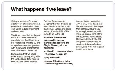 [16] From the Government’s own leaflet in 2016, stating a zero tariff, zero quota deal was not possible without paying millions to Brussels and accepting EU rules.