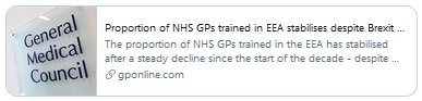 The number of European doctors working in the UK has been declining since 2010, long before Brexit, but it actually went UP in the last 12 months.