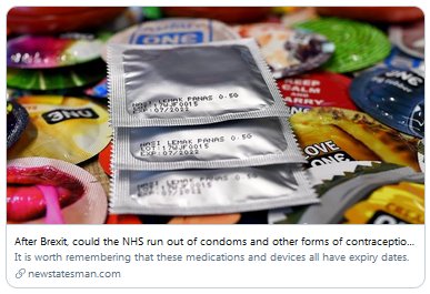 [8] In March 2019 we were treated to an article by Remainer Dr Rebecca Grossman saying that Brexit would lead to more unplanned pregnancies and the NHS running out of condoms...