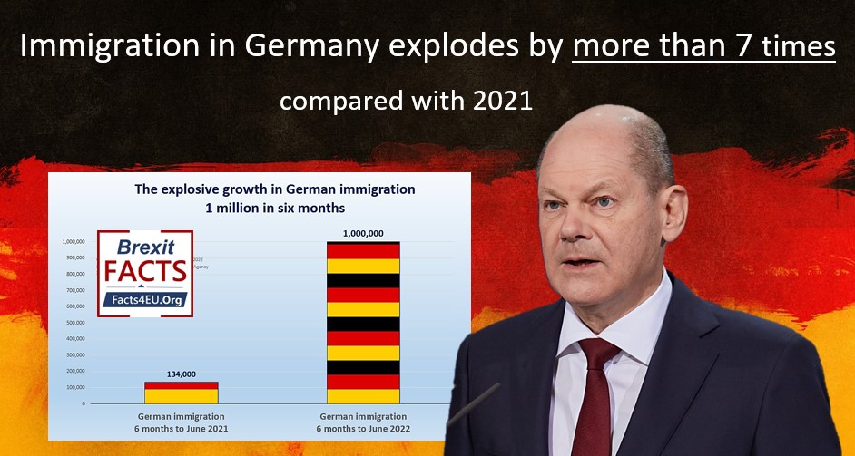 - Immigration into Germany was 1 million in first 6 months of this year (2022)