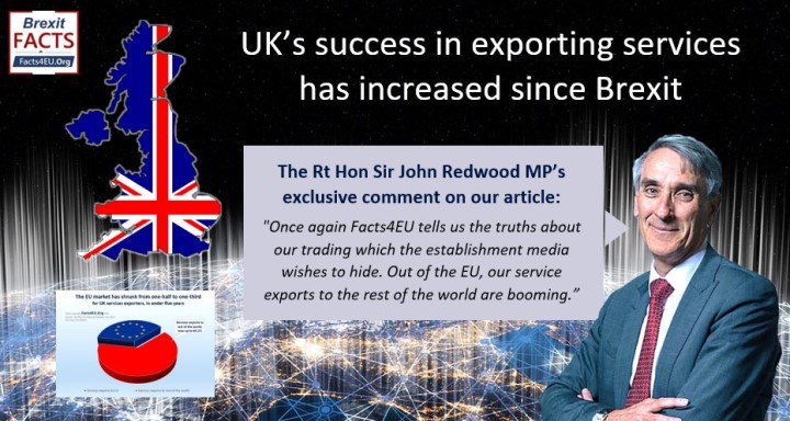 "Last year saw great growth in our service exports. All the time we were in the EEC/EU they kept barriers to service trade and did not negotiate free trade for services in their international trade agreements to help us. Out of the EU our service exports to the rest of the world are booming."