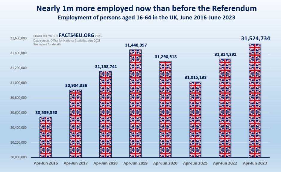 The latest employment figures released by the ONS yesterday present a mixed picture. The figures would doubtless be even better if we hadn't had a shift in people's attitude to work following the lockdowns. What is clear however is that the British public were grievously misled immediately prior to the EU Referendum.