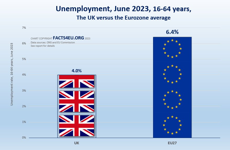 The unemployment rate is still 60% higher in the Eurozone than in Brexit Britain