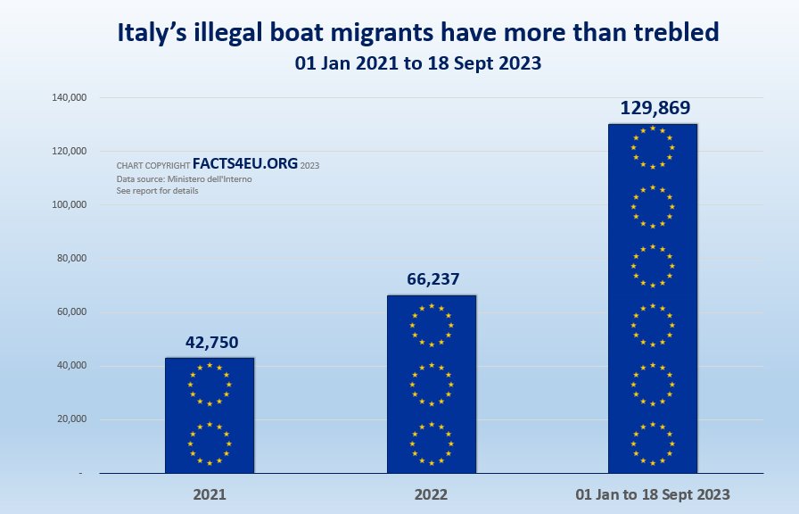 We can also reveal that in just one week in September 14,106 illegal migrants arrived on Italian shores. The majority were young African men.