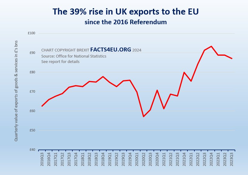 And Brexit Britain’s goods and services exports to the EU are up by 39%