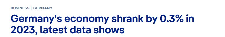 The headlines in Germany’s media recently have not made for comfortable reading if you are German. Here are a couple of examples on 15 Jan 2024 from Germany’s state broadcaster Deutsche Welle, showing the angst in Germany right now.