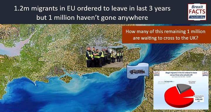With the number of illegal migrants (those the EU knows about) who have ignored orders to leave having now surpassed one million in the last three years alone, it must be asked just how many are intending to leave the EU in an illegal manner and cross to the southern shores of the United Kingdom.