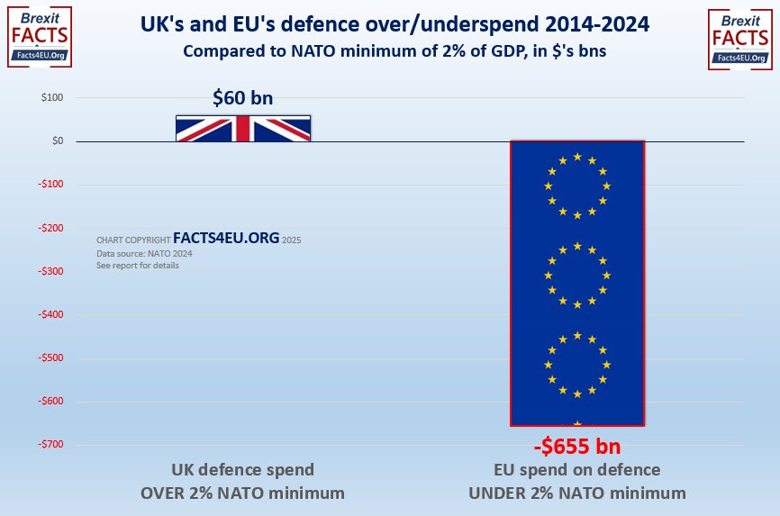 From a UK perspective, it could be said that the United Kingdom has been subsidising EU countries by defending them, and thereby allowing those countries to enjoy the £1/2 TRILLION which they have benefited from, by not contributing their fair share to the defence of Europe.