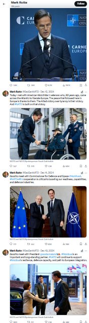 The majority of Mark Rutte’s tweets are about the EU rather than NATO. Here he is in typical EU form on Monday this week (13 Jan 2025) at the EU Parliament.
