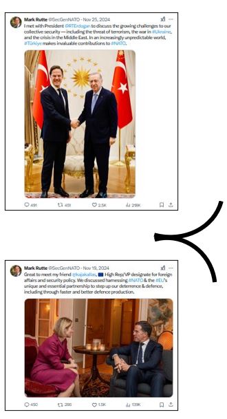 Mark Rutte flew out to meet President-elect Trump at his Mar-a-Lago home on 22 November 2024. We know this because the meeting was trailed by NATO in advance. It involved a transatlantic return flight, as Secretary General Rutte had to come back to fly to Turkey to meet President Erdogan on Monday – just four days later. All we have is the traditional handshake photo and a few words.