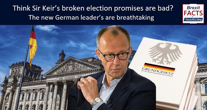 Within days of being elected, Friedrich Merz was backpedalling furiously on his cast-iron promise not to touch the 'debt brake' (see below). The broken promises in the UK may seem to have started far too soon after the election for “a change of circumstances” to be a justifiable reason to do what Sir Keir and colleagues had insisted they would not do. However these were as nothing compared to the actions of Herr Merz.