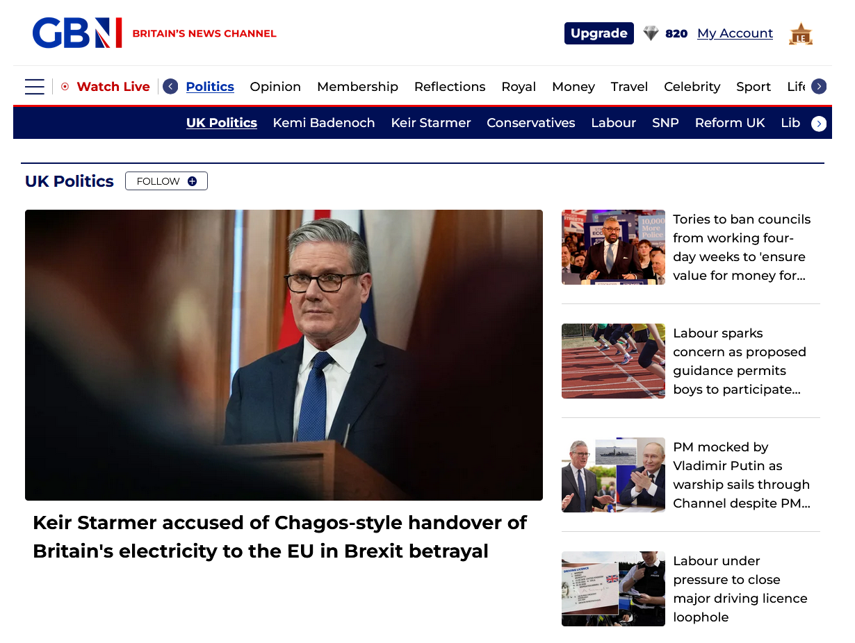 “Starmer wants to please the EU whilst damaging the UK. The EU, despising his weakness, intend to truss him up over controlling our energy market. They still feel able to demand a huge free gift of cash to help out their slow growth and no-growth failing policies as well.