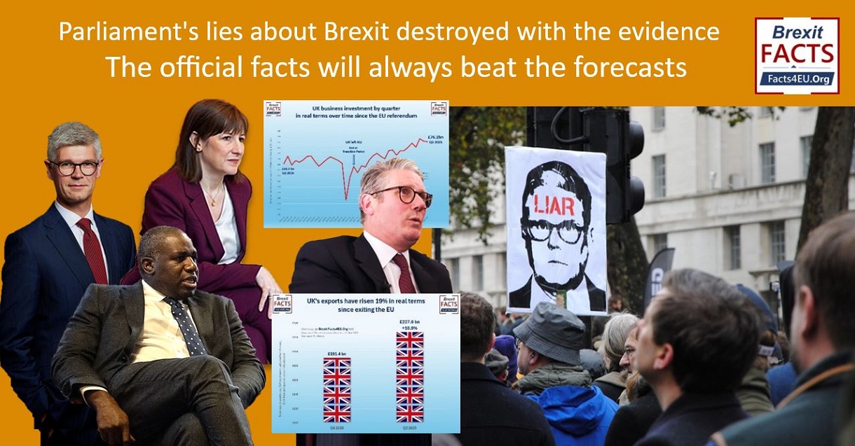 This report is again based purely on official facts, compared to the academic 'forecasts' which Rejoiners such as Sir Keir Starmer and all Rejoiner parties and their MPs are forced to rely on, because the facts will not back up their wholly erroneous claims.