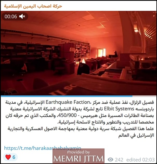 This new Telegram channel now contains videos of both the Czech and the London attacks which it says were carried out by the “Earthquake Faction”, which is part of a “secret international network that focuses on attacking Israel’s military and commercial assets throughout the world.” The information is written in a combination of Arabic and English.