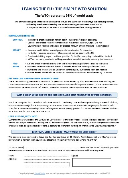 Please donate to our clean, World Trade Brexit, 'Go WTO' campaign