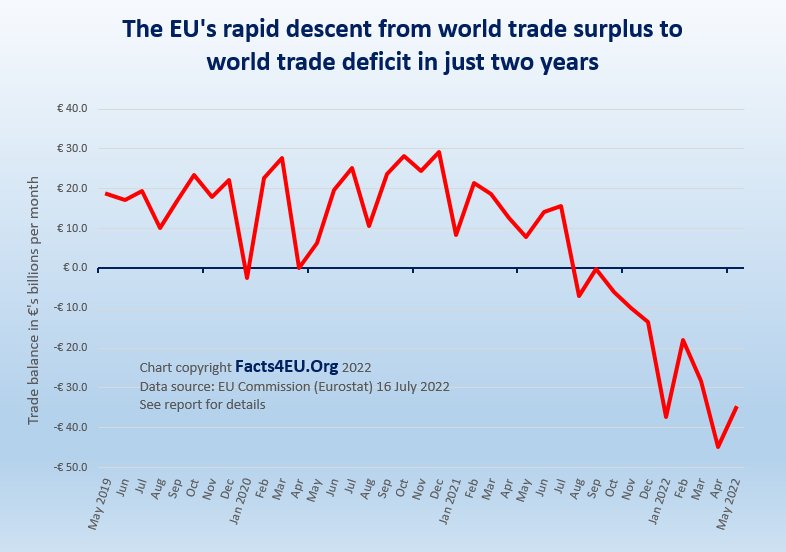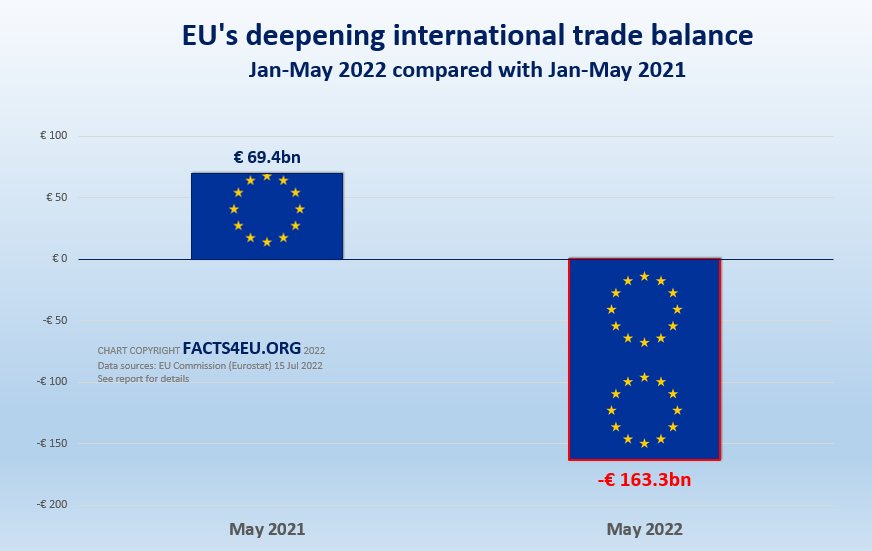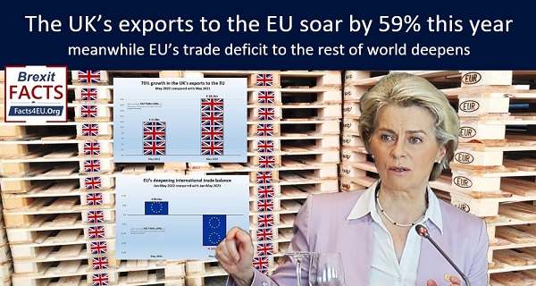 We always know it’s a Friday afternoon when the EU Commission quietly slips out some bad news. Yesterday (Friday, 15 Jul 2022) the Commission’s statistics agency released the EU’s latest trade figures – with the United Kingdom and with the rest of the world.