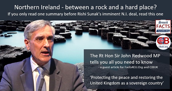 Firstly, we are once again grateful to the Rt Hon Sir John Redwood MP. We feel his points are well made and sum up the most important issues which readers should be aware of before the Whitehall spin machine goes into action - quite possibly on Tuesday next week - to promote the Sunak Government's new N.I. deal with the EU.