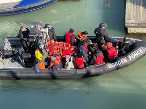 A French vessel from La Direction Centrale de la Police Aux Frontières (French border force) detects a large inflatable full of (mostly) young men who have set off from a French beach in the direction of England.