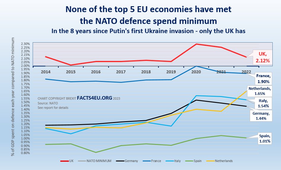 In this final and third part of Facts4EU.Org’s latest series analysing NATO’s defence figures published last Monday (21 Mar 2023), we reveal how none of the EU’s top five economies have stepped up in the last eight years since Putin’s first illegal invasion of Ukraine.
