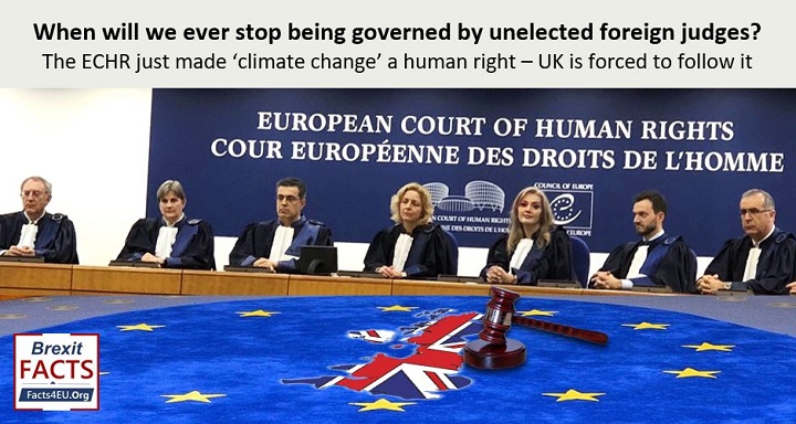 If the public needed any more justification for leaving the ECHR, surely this latest judgement by its court has provided it. None of the judges on the European Court have any specialist knowledge of climate change. What little they know will have been provided by climate change lobbyists.