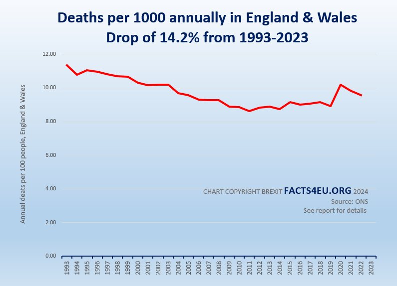In our report above we have provided the first historical analysis of deaths per 1000 people in England and Wales. In using such a long period (1993-2023) it is possible to draw conclusions which take out anomalous effects in particular years.