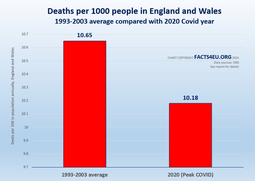 Our report also shows how the number of deaths per 1000 people in the peak COVID year of 2020 was LESS than it was in the 10 years from 1993-2003.