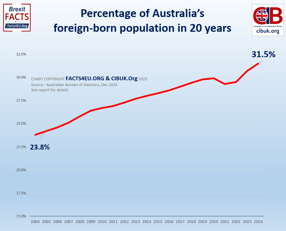 To provide some context, Facts4EU has first looked at Australia’s data for immigration and for its foreign-born population.