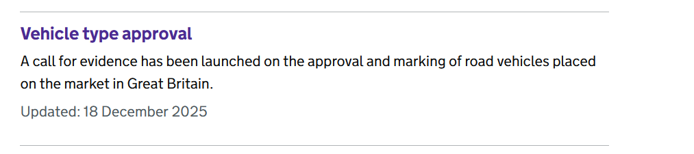 “I am pleased to inform the house that today I am publishing a call for evidence on the approval and marking of road vehicles placed on the market in Great Britain”