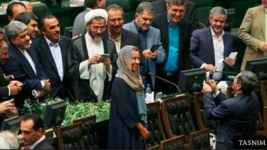 Federica Mogherini, the de facto EU Foreign Secretary in 2017, being mobbed by MPs in the Iranian Parliament for selfies. Ms Mogherini was only too happy to oblige.