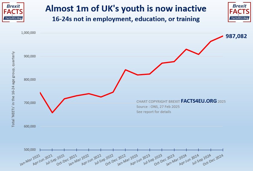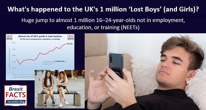 Huge jump to almost 1 million 16-24 year-olds not in employment, education, or training (NEETs)