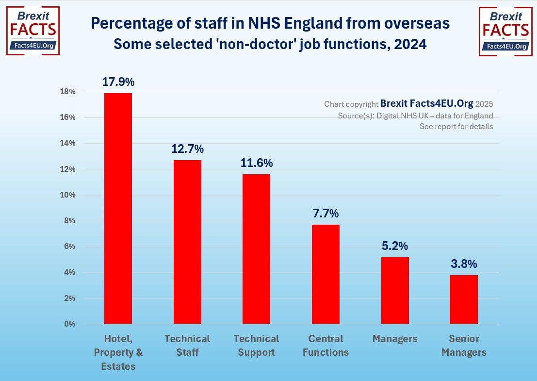 In this we report we focus principally on doctors, but we would like to hear from anyone in top management who can explain why we need to import all manner of other persons from overseas to man our health service. In another of our unique ‘at-a-glance’ Brexit Facts4EU.Org charts we give readers information they will not find in any newspaper today.