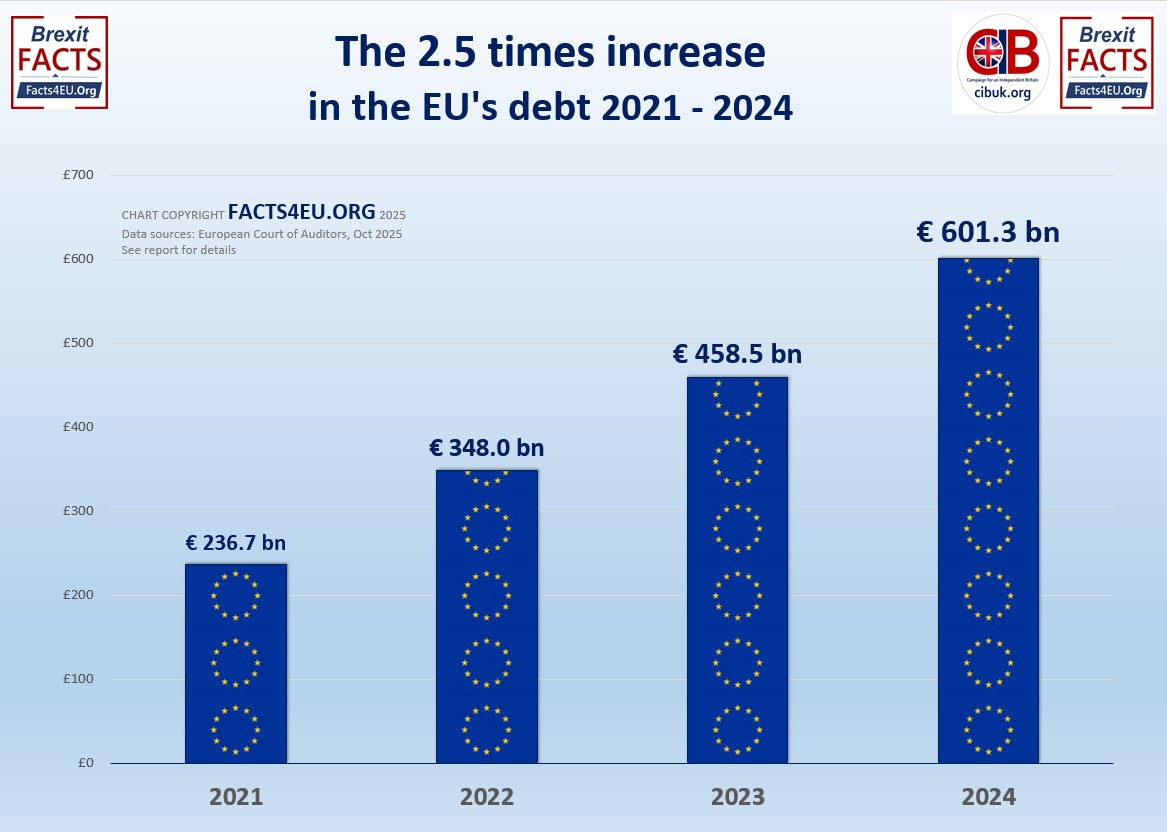 The EU’s debt has ballooned by an astonishing 154% in just the last four years since the UK left.