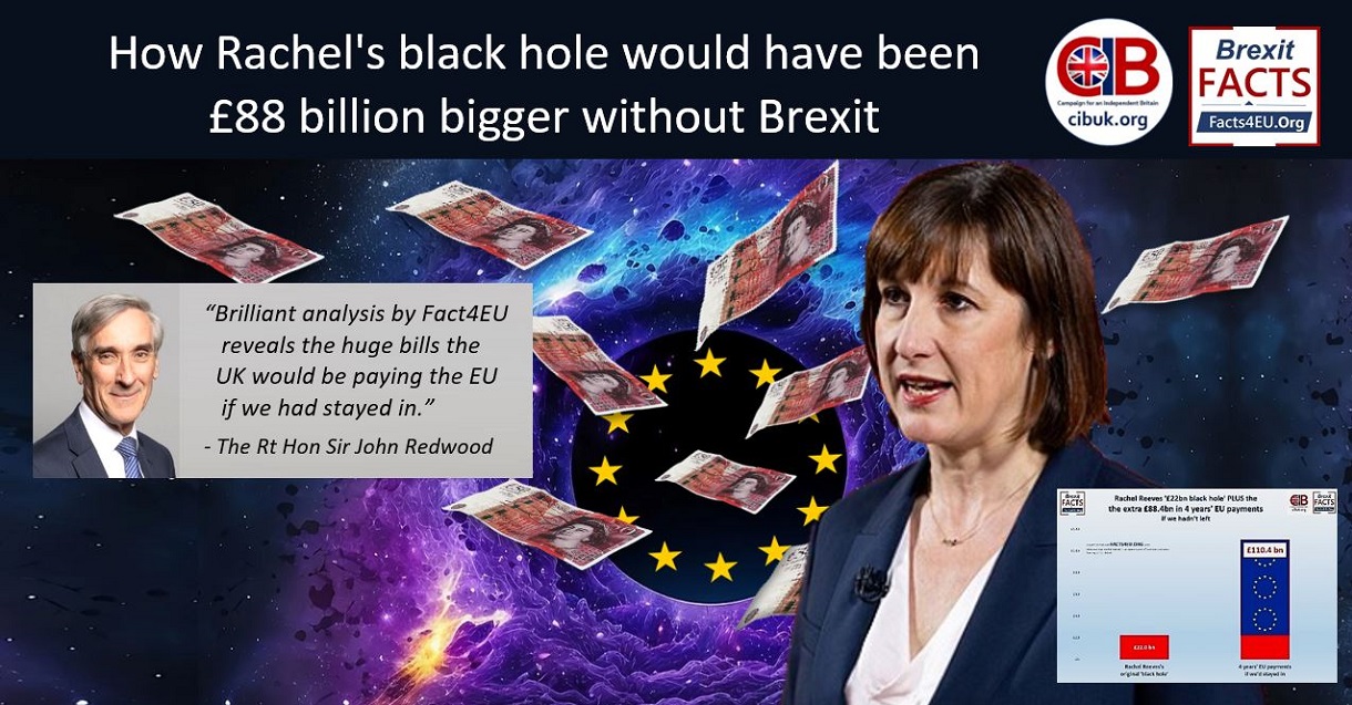 With Rachel Reeves laying the groundwork for her excuses of why she will break her and her government's pledges not to raise taxes in her budget next month, today Facts4EU and CIBUK, in association with GB News, can reveal just how much worse her “black hole” would have been if the UK had remained in the European Union.