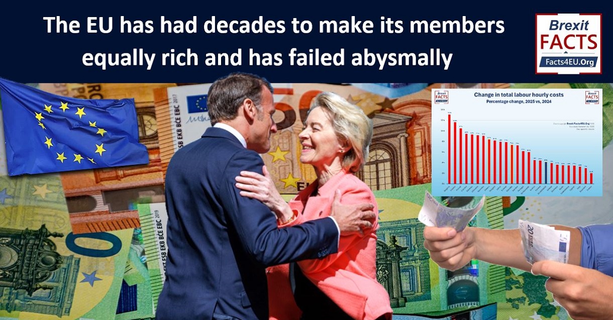 The EU has had years to ‘level up’ the wages and living standards of its peoples. Sadly, the differences between the lowest and the highest countries remains stubbornly high, both in terms of average wages per hour and average non-wage labour costs per hour.