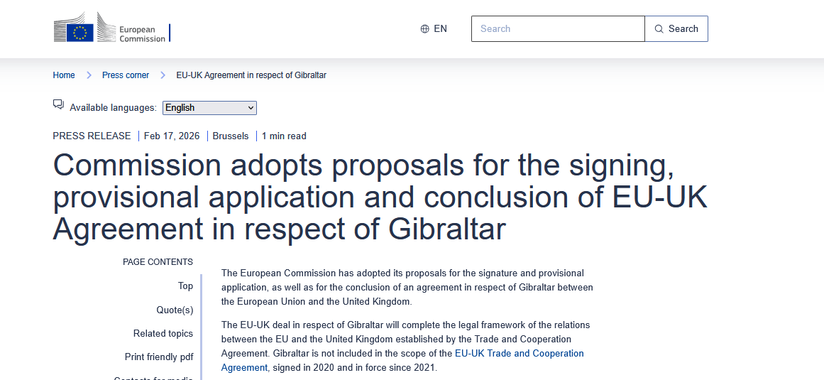 [ Sources: EU Commission | FCDO | Gibraltar House of Assembly | Gibraltar TV | Gibraltar Chronicle and Spanish press ] Politicians and journalists can contact us for details, as ever.