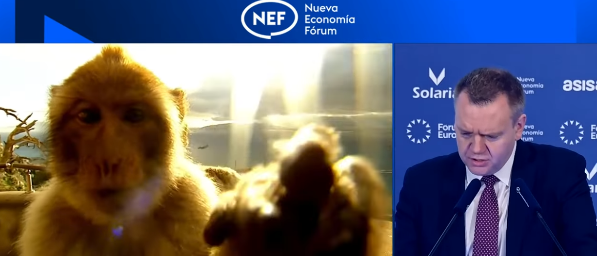 Credit: NEF (The organisers put the photo of one of the apes of Gibraltar on the screen behind him, not us.)