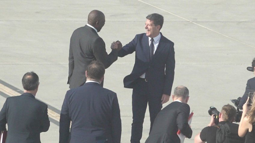 Gibraltar's Fabian Picardo meeting David Lammy off the plane last year - Credit: GTV
