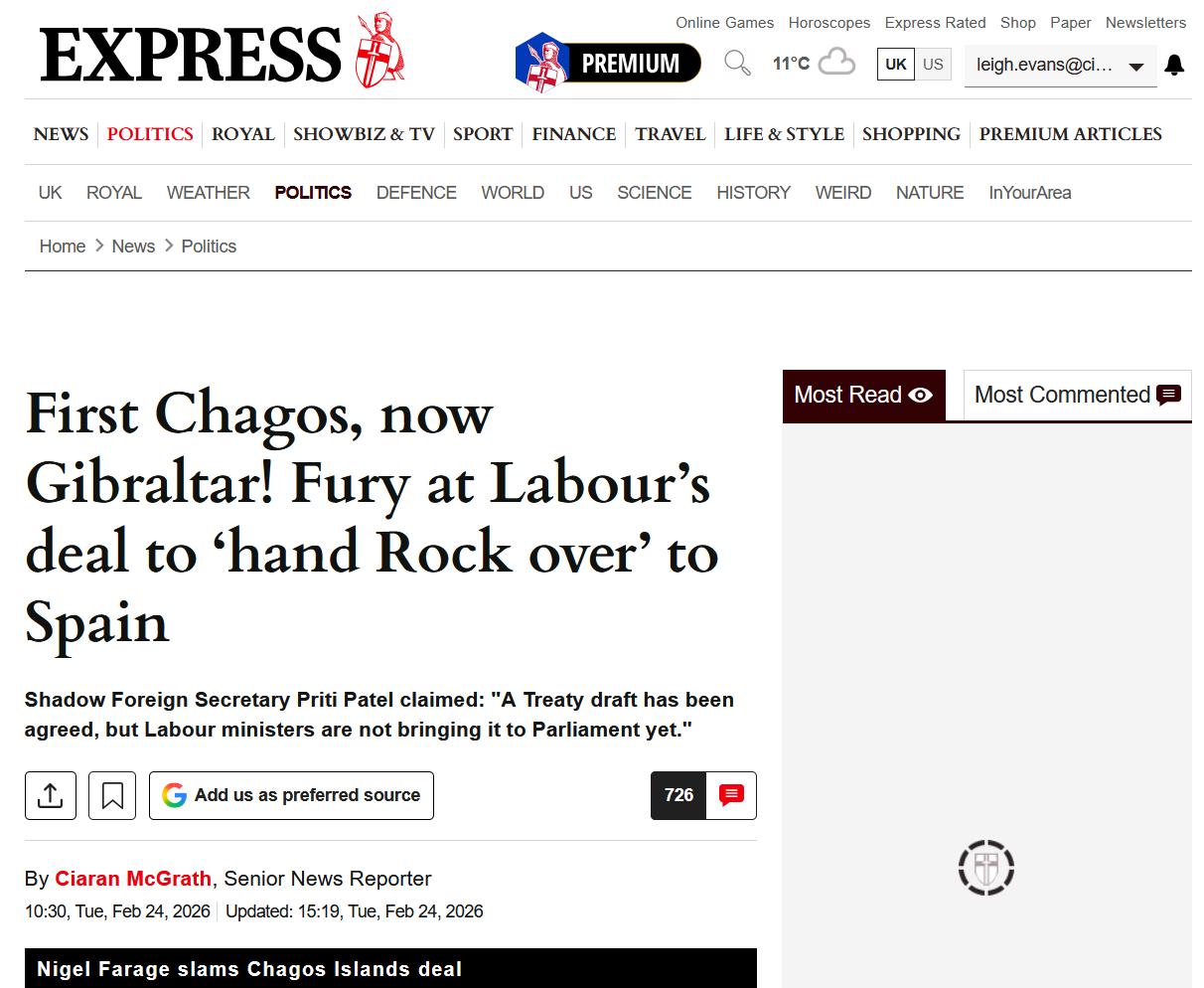 “Gibraltar is British. Its people have repeatedly and overwhelmingly chosen to remain under British sovereignty. Any treaty that hands Spain new powers over entry, residency, infrastructure or enforcement must be examined line by line by Parliament before it takes effect.