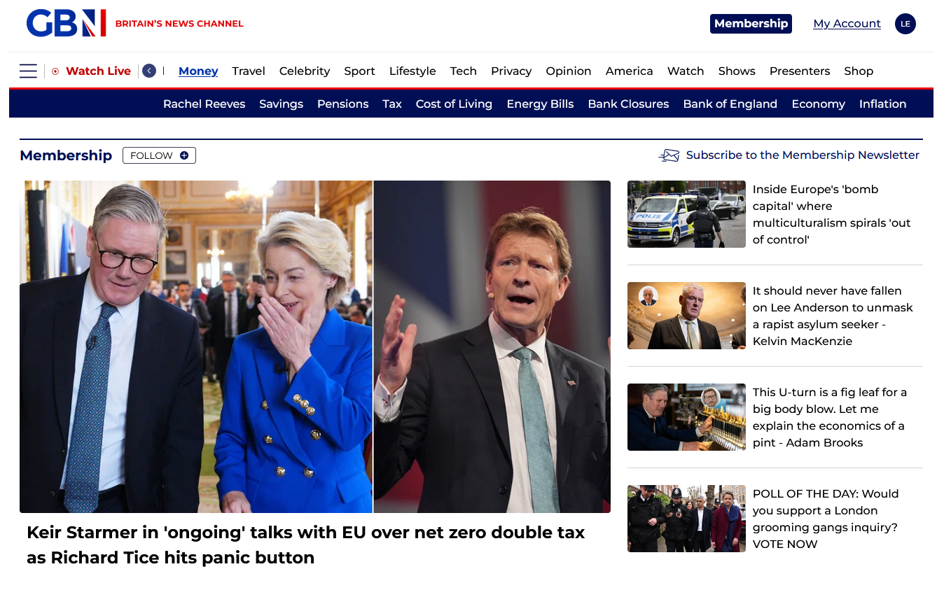 GB News Article: https://www.gbnews.com/politics/keir-starmer-net-zero-eu-tax-richard-tice-reform