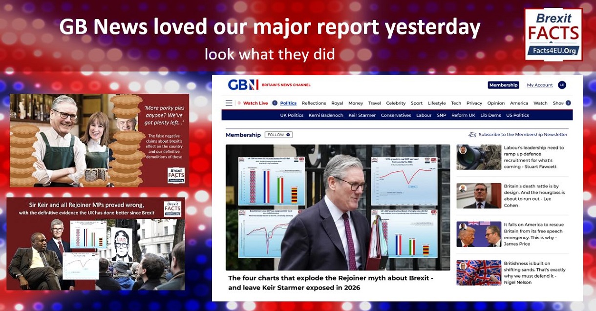 We strongly recommend our report yesterday, or you can read the coverage about it from GB News here. We destroyed all the lies being told about how Brexit has caused a large fall in GDP. This is simply untrue on every level. We have a very large readership, which we truly value. However this is not enough, as you will understand.