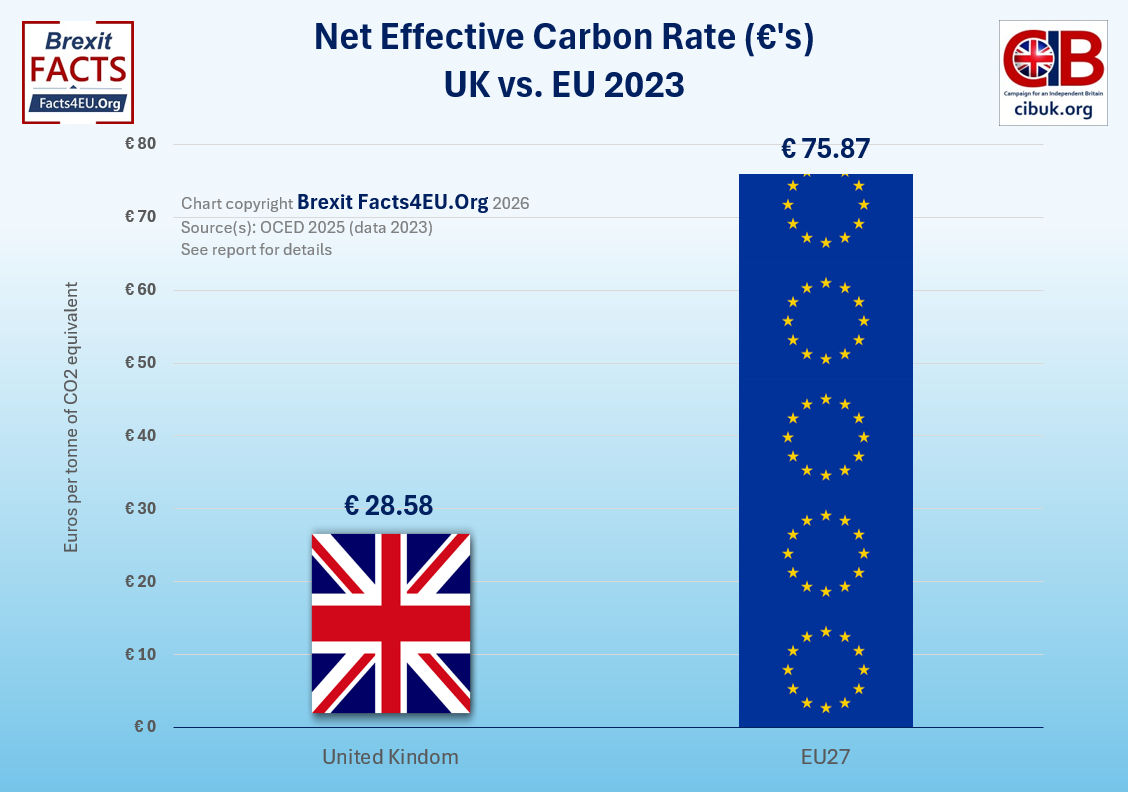 The EU’s net effective carbon rates are on average almost three times the cost of the UK’s.