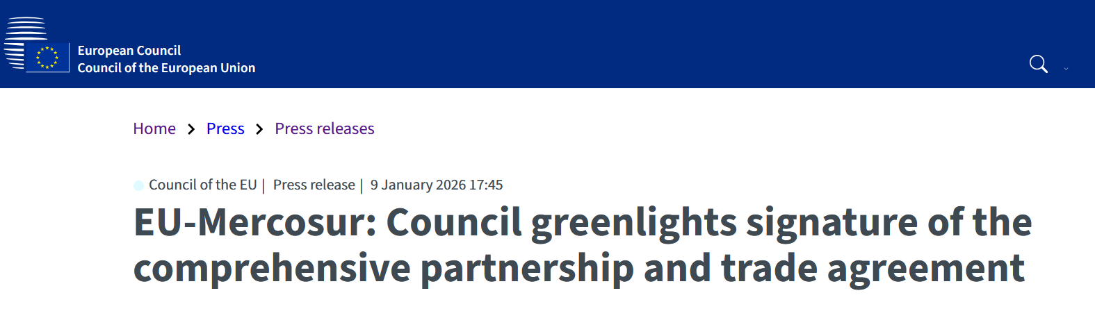 - EU Council, 09 Jan 2026